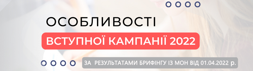 Особливості вступної кампанії – 2022 (за результатами брифінгу з МОН від 1 квітня 2022 р.))